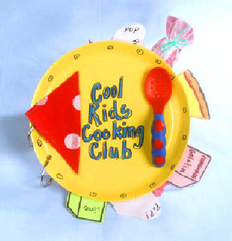 •Use the paper plate as a pattern, and cut out round pages from poster board. Punch holes on the left sides. Write and decorate one recipe per page.