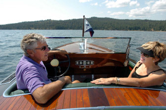 On the lake Thursday afternoon, Brad Hill kicked up the V8 engine on his 28-foot, 1929 Gar Wood and cruised across the slightly choppy water with wife, Sandi, sitting beside him.
