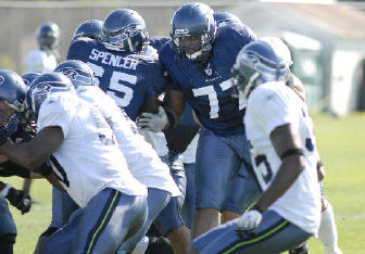 The Seahawks will break camp in Cheney following this morning’s scheduled 8:45 practice and return to their training facility in Kirkland, Wash., to continue preparations for their next two remaining preseason games and their regular-season opener on Sept. 10 in Detroit. … With Womack’s return to the offensive line, rookie guard Rob Sims was dropped back to the second team. … Backup center Chris Spencer continued to work with the No. 1 unit while starter Robbie Tobeck recovers from elbow surgery. … Wide receiver Bobby Engram rejoined the team after being excused to tend to a family matter back in South Carolina.