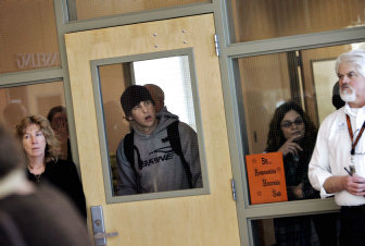 Police with guns drawn arrived in minutes, and teachers yelled at students to get to the nearest classroom, where they pulled out cell phones and called their families to say they were OK, said Jordan McBee, 17, a junior.