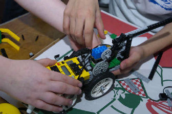 The wheeled Lego robots, made with programmable Lego Mindstorms, are typically the size of a brick and get points for completing a series of tasks arrayed around a tabletop, like knocking down flags.