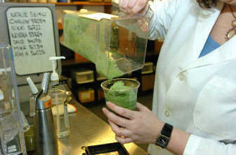 Plenty of adults drink Frappuccinos. But the sweetness of the drinks, and the fact that they borrow characteristics from the milkshake and 7-Eleven’s Slurpee, make them particularly appealing to children. Nutrition experts have criticized coffee chains for using sweetened coffee drinks as so-called starter beverages that get children hooked on caffeine. The Center for Science in the Public Interest, a food-industry watchdog, recently complained that Frappuccinos are among the most fat- and calorie-packed items on the Starbucks menu. A 16 oz. grande-size Bananas & Creme has 550 calories and 15 grams of fat. By comparison, the same size chocolate shake at McDonald’s has 580 calories and 14 grams of fat.