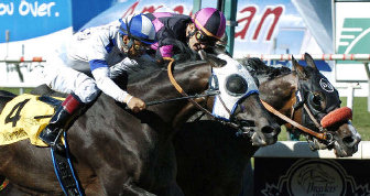 But Nakatani righted Lava Man and they stalked Magnum much of the way before rallying in the closing strides. Lava Man’s nose victory tied the record for shortest winning margin.