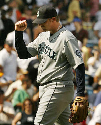 Ichiro, who singled and scored in the first inning, opened the eighth with a single against Johnson (10-8), who struck out a season-high 11. Ichiro stole second, went to third on a throwing error by Stinnett and scored the tiebreaking run on a sacrifice fly by Raul Ibanez.