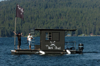 On what was a neglected and unassuming 20-foot pontoon boat, a crew of five young men from Coeur d’Alene and Spokane created a version of the infamous Black Pearl ship from the blockbuster “Pirates of the Caribbean” movies. The idea came to Baldwin in May because the group was tired of the bar scene downtown and wanted a new place to spend their summer at home.