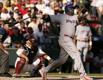 Bartolo Colon, the 2005 American League Cy Young winner for the Los Angeles Angels, pitched three scoreless innings for the win. Johan Santana, the 2004 A.L. Cy Young recipient, took the loss.