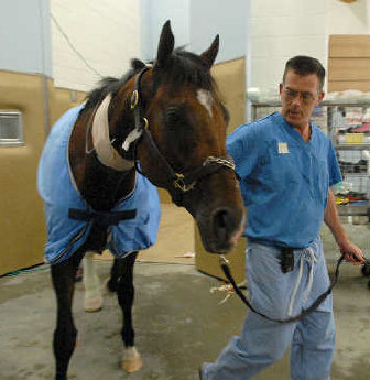 KENNETT SQUARE, Pa. – Barbaro was on his feet Monday in his 12-by-12 stall, and that’s where he’ll be for the next few days, the next few weeks and probably the next few months.