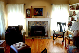 No stranger to remodeling, after purchasing the house 15 months ago, Rose stripped out dark carpets and opened widows to sunlight and the view. Using soft color on the walls and fabrics as an accent, and furnishing the house with antiques, Rose brought period charm to the dated interior.
