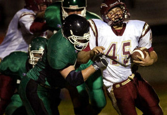 In a matchup of league rushing leaders, U-Hi’s Tyler Carlson got the better of EV’s Ryan Campbell in yardage 102-61, but Campbell scored twice.