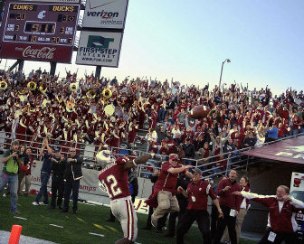 Cornerback Tyron Brackenridge missed the end of the game because of a pulled hamstring. The Cougars’ top corner, Brackenridge has had chronic troubles with the other hamstring. He said he expects to be ready for next week’s game. … Right guard Andy Roof suffered a right heel bruise and missed most of the game. The East Valley High graduate was injured while chasing down Oregon’s Jarius Byrd on a return of a blocked first-quarter extra point. The Ducks didn’t score on the play, but Roof missed the rest of the game, with fellow sophomore Dan Rowlands filling in. … Senior safety Eric Frampton continued his standout season with a career-high 16 tackles. … Hill’s touchdown was the 31st of his career, but he said after the game that he’s playing at about 80 percent because of his shoulder sprain. The senior also said he probably should not have tried to play the week before against Cal. … Oregon’s Brady Leaf was a game captain for the Ducks even though he wasn’t expected to play coming in. Leaf and the Ducks benefited from what appeared to be another botched instant replay decision, as Leaf threw one pass from past the line of scrimmage. A replay review was declared inconclusive. … Charles Dillon started in place of Brandon Gibson at wide receiver for the Cougars. … Doba said backup quarterback Gary Rogers was available under center in addition to his holding duties despite a shoulder injury. “Could have played him … thankful we didn’t need him,” Doba said. … WSU tallied its lone sack late in the fourth quarter, the second consecutive week in which it has had just one after picking up a national-best 27 through six games.