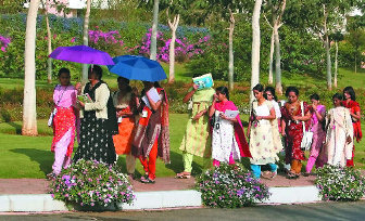 It has 120 faculty members, more than 80 buildings, 2,350 hostel rooms and a 500,000-square-foot education complex. There’s a movie complex built inside a geodesic dome. An army of workers sweeps the already-spotless streets and trims the already-perfect lawns.
