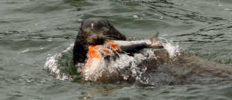 Some sea lions, whose population is growing fast, have been branded for identification. Others are known to fisheries managers by scars and other markings and have been regular visitors at the dam for years.