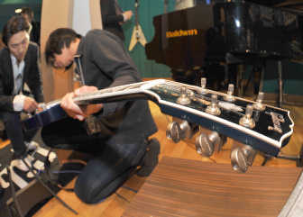 Musician Ichiro Tanaka, who tuned and played a sample guitar at Gibson’s Tokyo office Monday, said the technology is handy for professionals too. If they use special tuning for just part of a concert, as he often does, it means they don’t have to lug around an extra guitar with the second tuning ready.