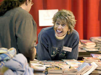The director of the regional Volunteers of America, Marilee Roloff, stood surrounded by children’s books Saturday afternoon at the end of the first day of the Christmas Bureau. She looked tired but undaunted by the task of restacking the mountain of books that spilled off the table onto the concrete floor of the Ag Building at the fairgrounds.