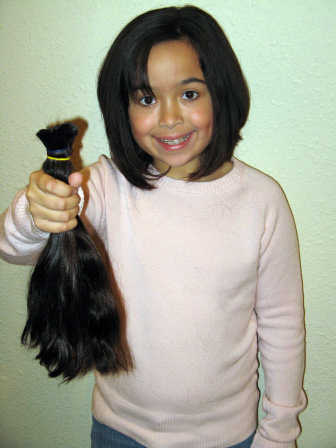Her advice to children her age is, “Stay in school, eat your veggies (her favorite is broccoli) and help others.” She plans on growing her hair long again so she can supply more hair to others.