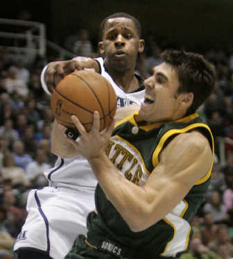 Both teams were playing in the second game of back-to-back sets. The Sonics, who played at Minnesota on Friday night, built a 10-point lead in the first quarter and stayed close for three quarters.