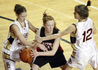 Mielke averaged 25 points during four district tournament games, but she scored only two points in the first half as the Falcons limped ahead 15-12 at halftime. Deking and Mielke hit consecutive 3-pointers early in the third quarter to push the S-H lead to 22-12, however, and the Falcons led comfortably the rest of the way.