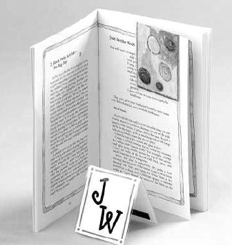 “Draw a line across the middle of the poster board or index card to create two 2 1/2 -by-3-inch sections. On each of the two sections, draw pictures that represent the theme of the book. Or, cut out pictures, photos, etc., and glue them in place.