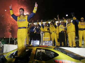 Last year’s winner Carl Edwards led for seven laps and looked as if he might win the race for a second consecutive season. He took the lead on Lap 118 and subsequent cautions would have allowed him to stay on the track through the remainder of the race. But he rubbed against the wall late in the race and finished sixth.