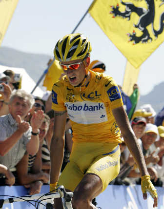With Rasmussen out, Spanish rider Alberto Contador of the Discovery Channel team moved into the race lead.