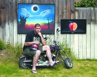 The latter is Wednesday’s featured artist, Brandon Hewitt. A little rough around the edges, Hewitt wears tattoos and piercings comfortably. He is an untrained artist, but his work is moving and ranges from the demure and subtle to rock ‘n’ roll-style tags.