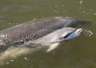 So officials have electronically linked Castaway’s habitat with a lagoon at Dolphins Plus, a research and interactive educational facility a few miles away. Underwater speakers and microphones have been installed at both locations so the calf can communicate with hearing dolphins.