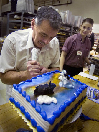He’s currently at the Browne’s Addition branch of Rosauers at Third Avenue and Oak Street. His baking stint begins at 12:30 a.m. and ends at 9:30 a.m.