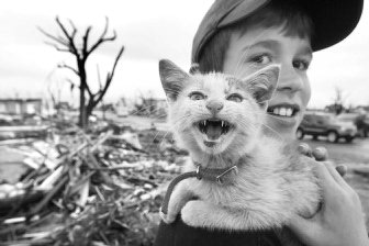 Tree trunks stood bare in Greensburg, stripped of most of their branches. All the churches were destroyed. Every business on main street was demolished. The town’s fire engines were crushed.