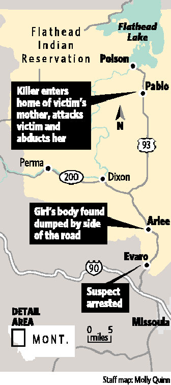 Craft’s mother, Diana Cote, told The Spokesman-Review that the killer entered her home near Pablo, Mont., by breaking a window about 3 a.m. The killer attacked her daughter, pulled her out of the home and drove off with the girl in a pickup, Cote said.