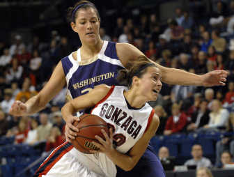 Halftime–Gonzaga 55, Washington 33. 3-point goals–Washington 5-15 (McNeill 0-1, Florence 0-1, Whitcomb 2-3, Redmon 0-2, Bennett 0-1, Augustavo 3-7). Gonzaga 4-17 (Bekkering 1-2, Kane 0-3, Elliott 2-5, Bjorklund 0-1, Vandersloot 0-2, Shives 1-4). Fouled out–none. Rebounds–Washington 40 (Mosiman 8), Gonzaga 41 (Bjorklund 10). Assists–Washington 13 (Whitcomb 5), Gonzaga 22 (Vandersloot 10). Total fouls–Washington 15, Gonzaga 17. A–2,352.
