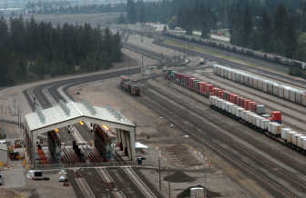 Opened in August 2004, the depot is an important pit stop for the railroad’s transcontinental freight line. Instead of the eight hours it takes to unhook a locomotive from its rail cars and fill it with fuel in the company’s cramped Seattle yard, the Hauser mainline fueling depot is capable of loading a locomotive with 10,000 gallons of diesel in about 45 minutes.