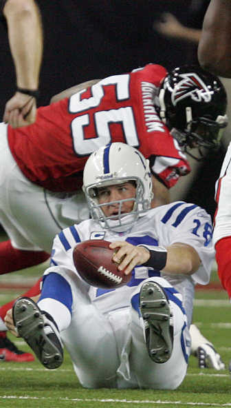 But any thoughts the Falcons (3-8) had of pulling off a huge upset were quickly wiped out by Manning. He threw all three of his TD passes in the second quarter, going 23 yards to Reggie Wayne, 8 yards to Dallas Clark and 5 yards to Ben Utecht.
