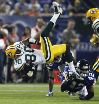 Favre’s handoff to Ryan Grant wasn’t clean, and Chad Greenway fell on it at the Minnesota 46. But Holcomb’s tipped pass from the Packers 34 was intercepted by Atari Bigby, with the Vikings screaming unsuccessfully for an interference call on Charles Woodson.