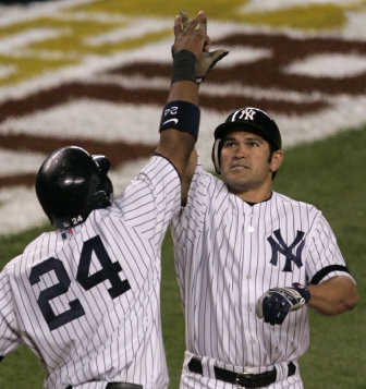 Damon worked the count to 2-0 against Westbrook and hit a sinker with no sink on a high arc to right. As it cleared the wall to put the Yankees ahead 5-3, Cano raised both hands in the air down the third-base line and jumped twice. Damon went into a trot, and the crowd of 56,358 leapt with him.