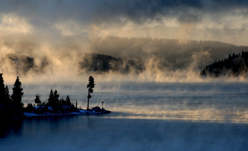 Don Sausser sez of this photo that he snapped Tuesday morning when the temperature had dipped to 1 degree: “The point of Tubbs Hill is silhouetted by morning sun illuminating lake fog on a one degree morning.”
