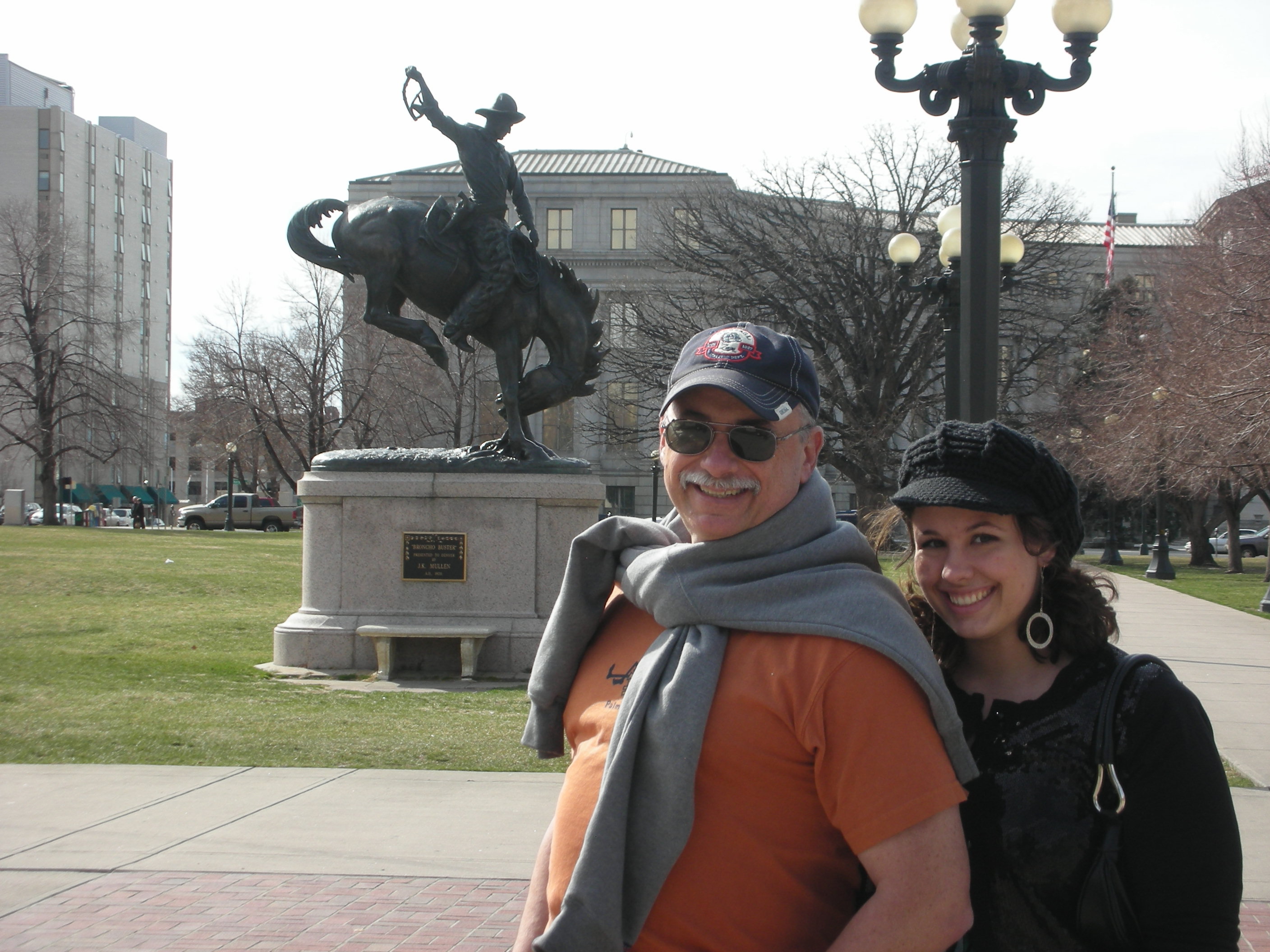 I’m outta here for 14 days, to endure the snow, to enjoy Christmas, and to spend time with my wife and our three kids who are flying in from Denver and Portland: Junior, Amy Dearest (above with me in Denver this spring), and Lovely Daughter-In-Law Stephanie. While I’m gone, I want a group of you to head over to Stickman’s, show him how to comment on the new site, and set him up with an avatar. The technology has made him nervous. And Huckleberries isn’t the same without Stickman settling everyone down with his observations about life. BTW, Blogmeister Ryan told me that one of his priorities is moving the blogrolls to this site. So you can keep up with one another while I’m gone. You should also feel free to publish links to your latest posts in the comments threads to let people know what you’re doing. Or you can post a whole blog entry, if it’s short enough. Enjoy yourselves. Here’s your Wild Card …