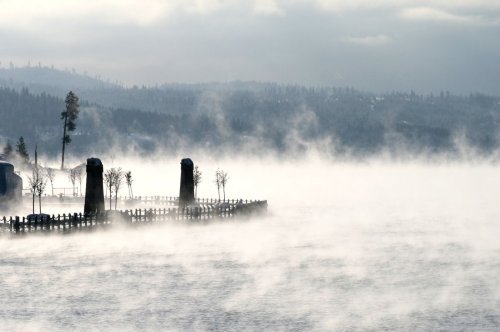 Don’t tell Bob, but I’m going to put studs on the car today. I know, I know, some of you guys have driven up the side of Mount Everest without studs. But I feel safer with them on my car. So does my wife. Ya gotta do what ya gotta do. Meanwhile, you can enjoy another of Councilwoman KerriT’s photography of the winter waterfront. A little fog, a little sun … and voila … you have a somewhat mystical view of the floating boardwalk. I have a bunch of posts below from the main comment thread of Huckleberries Online. Now, for your Wild Card …