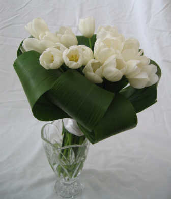 Any white flowers will do. Tulips are always beautiful, but lilies are nice and chrysanthemums echo the snowy theme just as well.