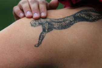 The sweatshirt comes off to reveal the tattoo of a cheetah on her left shoulder, and when Marissa Tschida reaches across to give it a pat it’s a sign that she’s ready for business. And as a javelin thrower, this is her business time of year.