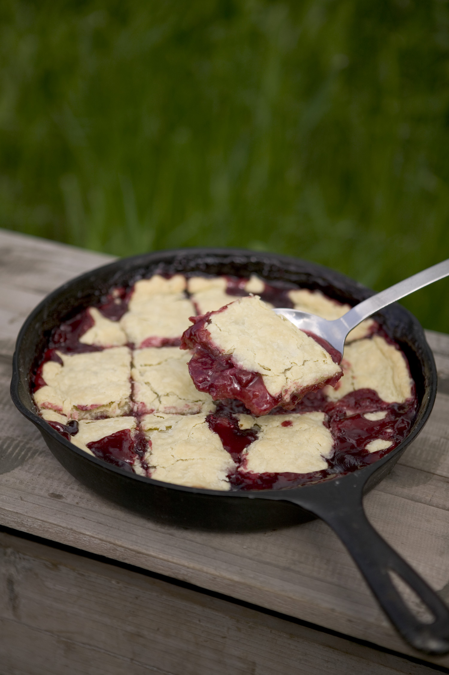 Preheat oven to 400 F. Combine all ingredients except butter in a large bowl and toss until fruit is coated. Put fruit into a buttered cast iron skillet. Dot with the rest of the butter. Roll out dough and transfer to skillet. Tuck the edges of dough in, pressing on the fruit. Bake for 30 minutes. Reduce heat to 350 F and continue to bake for 15 more minutes. Pull the skillet out and slice the pie crust into squares (as you would a bar cookie) and return skillet to oven for 10 more minutes. The crust then submerges into the fruit juices — the trademark of a “pandowdy”! Serve warm by the big spoonful with some freshly whipped cream or a scoop of vanilla ice cream.