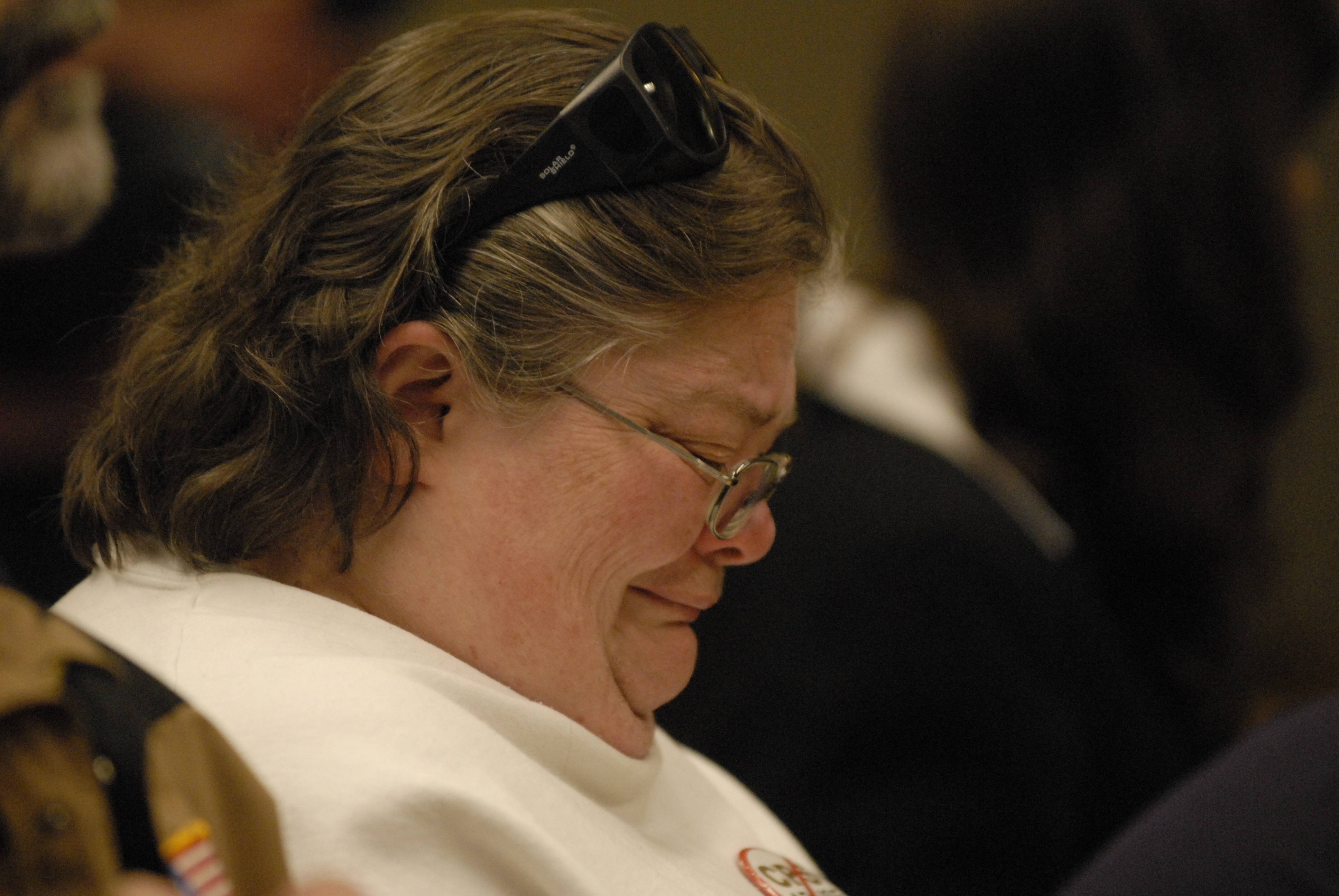 The standing-room-only crowd, numbering about 100, was full of parents and grandparents, some holding photographs of children.