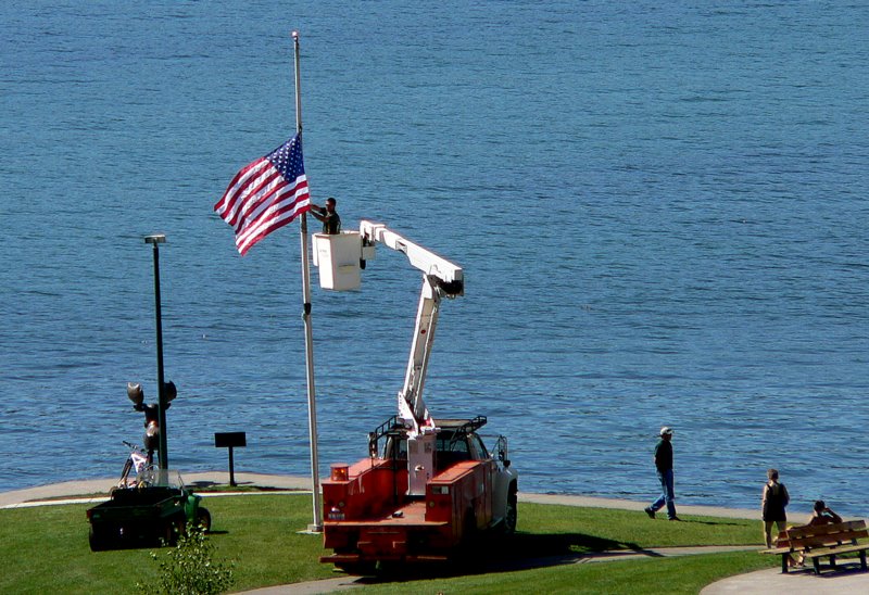 Don Sausser, HBO’s Eye On Sherman Avenue, reports via camera that the flag at Independence Point has been lowered to half staff in memory of the late U.S. Sen. Teddy Kennedy.