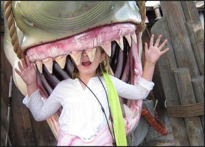 “I didn’t even have to ask my daughter to pose like this at Universal Studios. She thought of it before I did,” writes Idaho Dad/A Family Runs Through It. “It was the funniest thing to her to be gobbled up by the giant fake shark.” More here .