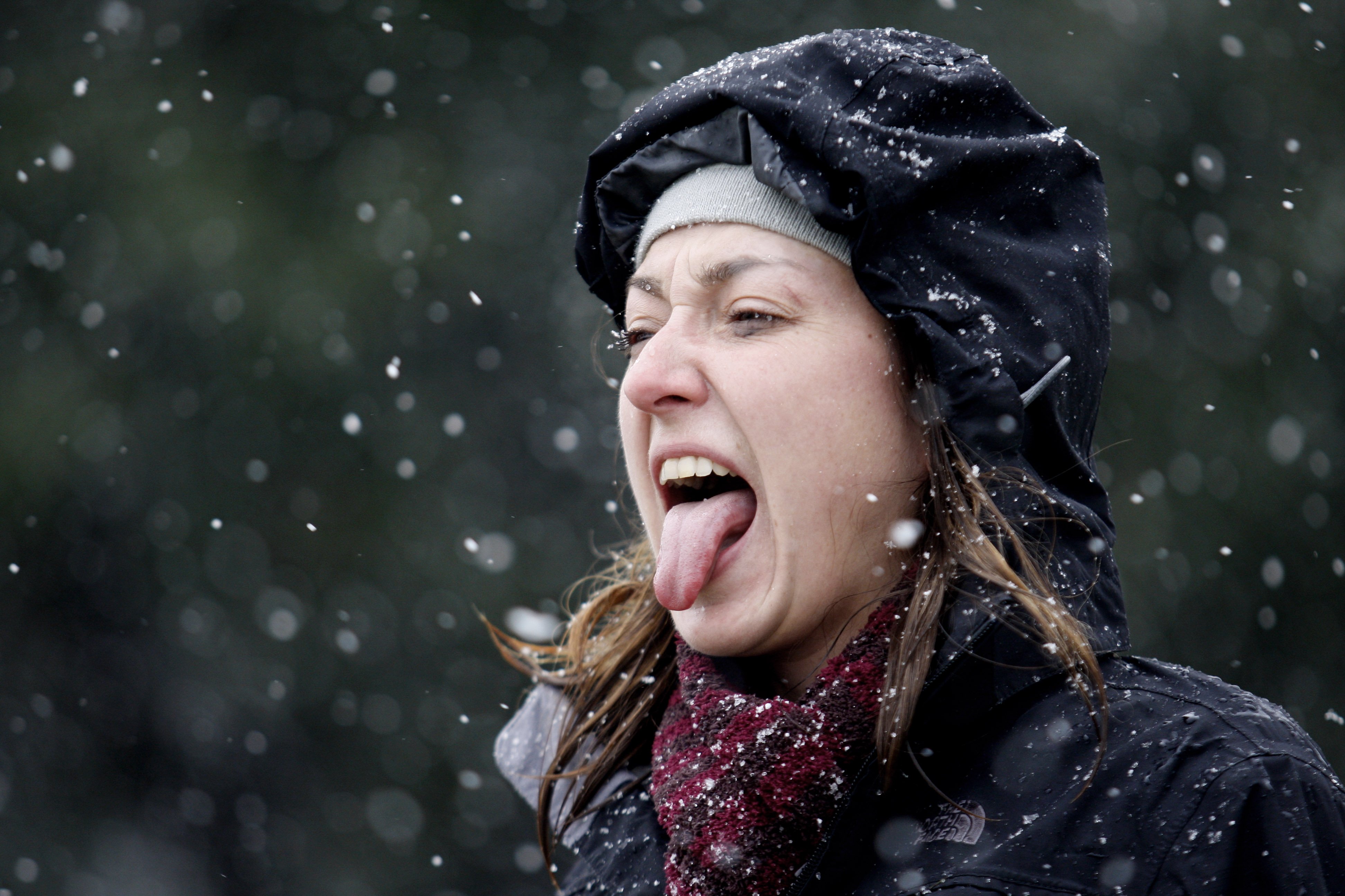 J ulia Lang sticks her tongue out to taste the falling snow in Houston on Friday. National Weather Service meteorologist Charles Roeseler says it’s the earliest snow in Houston’s history. Snow is rare for the nation’s fourth largest city. In the past 15 years, it has snowed four times, including Friday. (AP Photo/David J. Phillip)