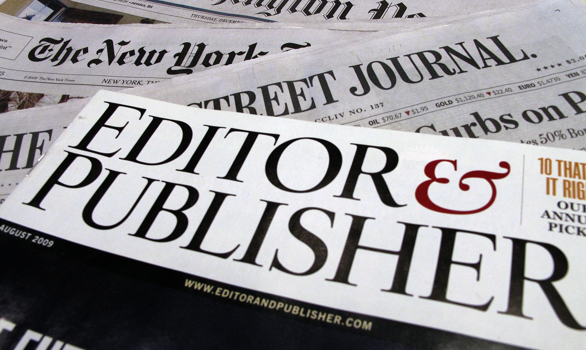 An issue of Editor & Publisher is shown atop newspapers in New York earlier today. The journalism trade journal Editor & Publisher is shutting down after 108 years of publication. Editor Greg Mitchell of Editor & Publisher said he was shocked by the decision to immediately close the magazine’s print and online editions here . (AP Photo/Dan Goodman)