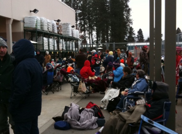 MamaJD just sent this photo via phone from inside the garden center at Fred Meyer, where people have been waiting all night to get their Sarah Palin’s book autographed.