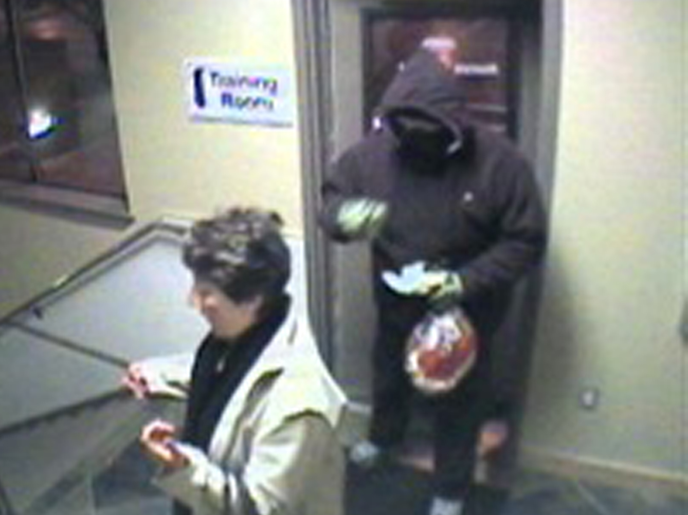 Surveillance photo of the man who robbed Mountain West Bank this morning (courtesy Coeur d’Alene Police Department/Coeur d’Alene Today)