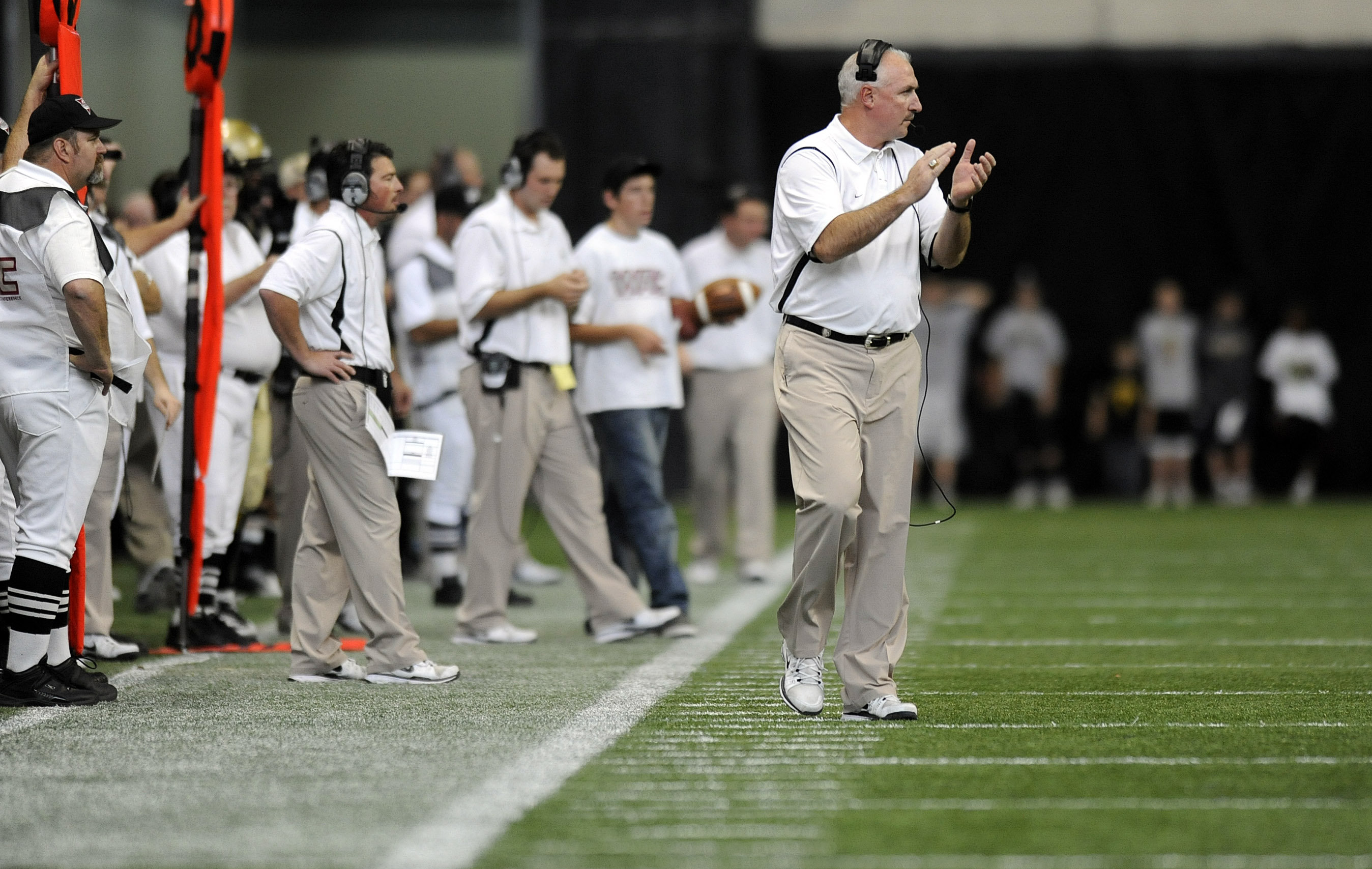 Idaho coach Robb Akey cheers his team against Hawaii during their game at the Kibbie Dome in October.