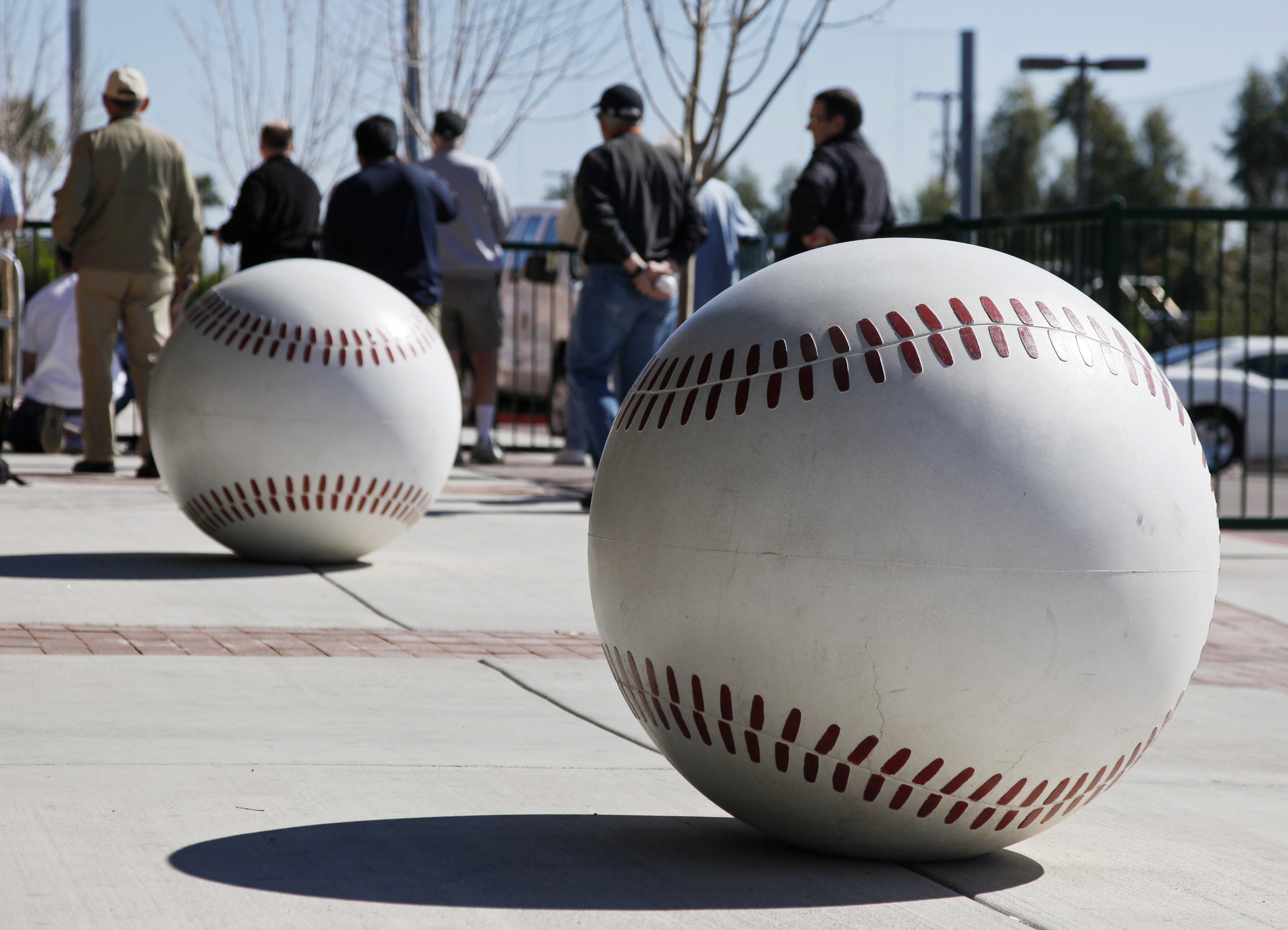 Autograph seekers wait outside Scottsdale Stadium for the arrival of San Francisco Giants players at spring training baseball in Scottsdale, Ariz., earlier today. The advent of spring training this week means that winter is waning. (AP Photo/Eric Risberg)
