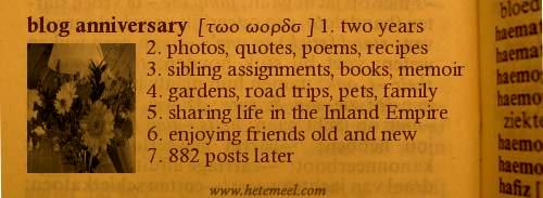 Congratulations are in order for Gathering Around The Table — one of the 3 blogs compiled by our favorite current and former Silver Valley siblings. Gathering Around The Table recently celebrated its second blogiversary.